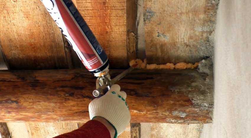 Баллон устанавливается в пистолет, как и обычная монтажная пена. Если основание имеет глубокие неровности, их необходимо заполнить утеплителем. Для этого на пистолет устанавливается наконечник прямого нанесения. После этого заполняются все впадины.