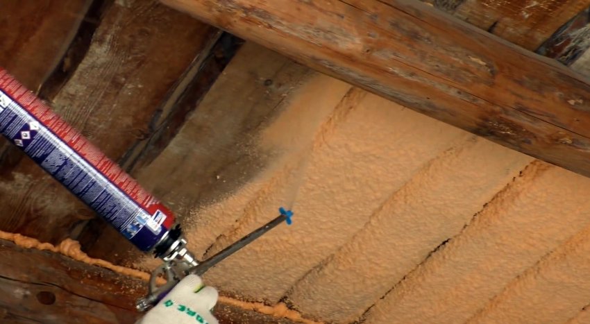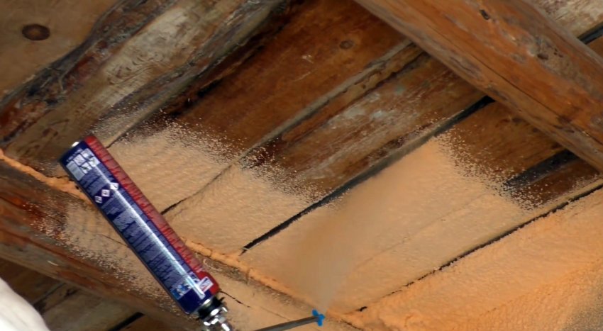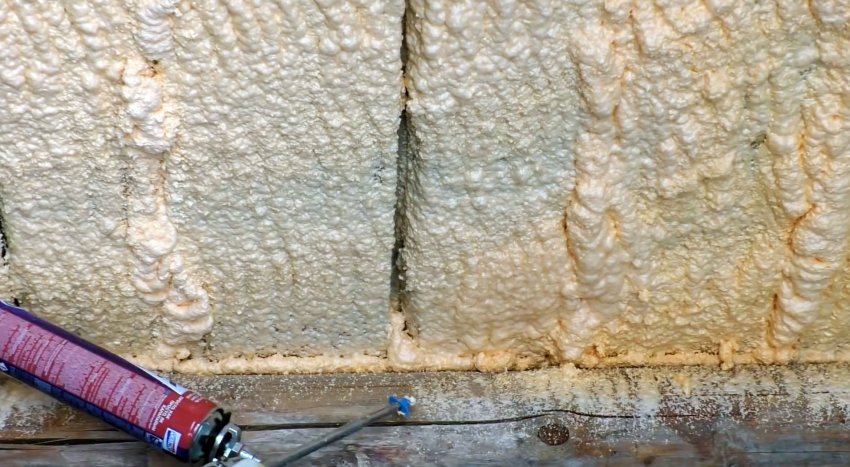Все незаполненные впадинки можно дополнительно точечно запенить. Через 10 минут после первого слоя наносится второй, чтобы довести толщину утеплителя до приемлемой.