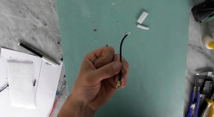 Канцелярским ножом вырезаем прямоугольники из тонкого теплоизолятора по размеру с пол патча — это будущая прокладка для панелей антенны. В центре каждой прокладки шилом делаем отверстия под винт.