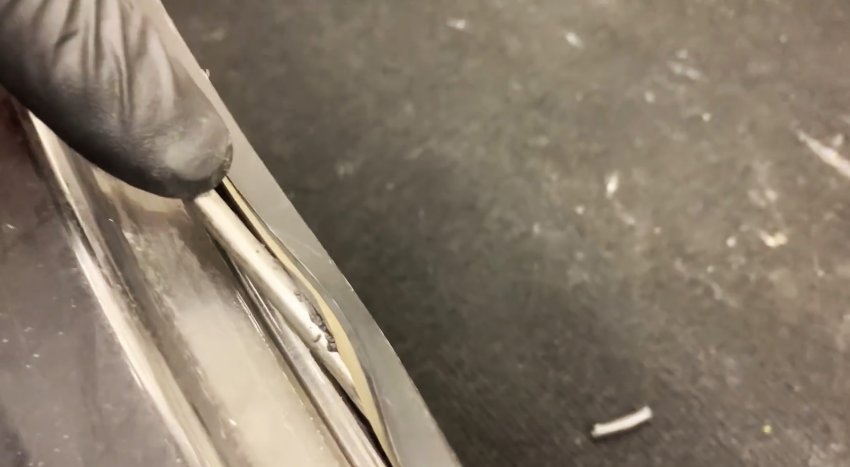 Все что нам остается сделать — вычистить остатки герметика из шва. Для этого применяется та же самая шлицевая отвертка. Использовать жидкость на этом этапе уже не обязательно.