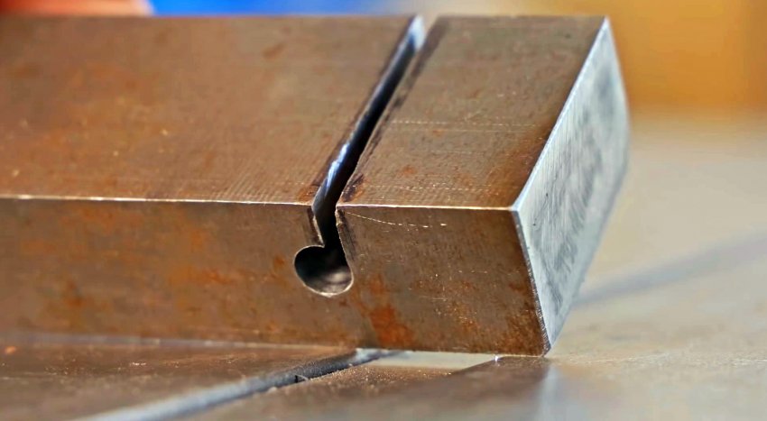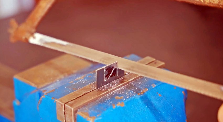 Отделяем фрагмент с отверстием и прорезью (матрицу) от остального бруса, удаляем заусенцы и скругляем наружные грани.