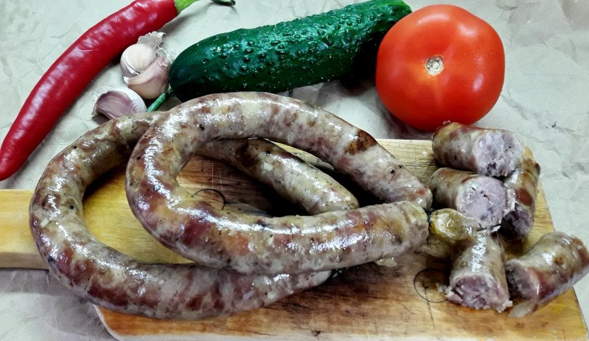 Сочная, с умеренным количеством чесночка и обязательно с добавлением сала - такая украинская колбаса несложно готовится в домашних условиях и не требует никаких специальных приспособлений и томительного ожидания.