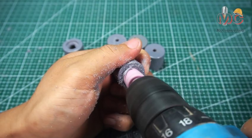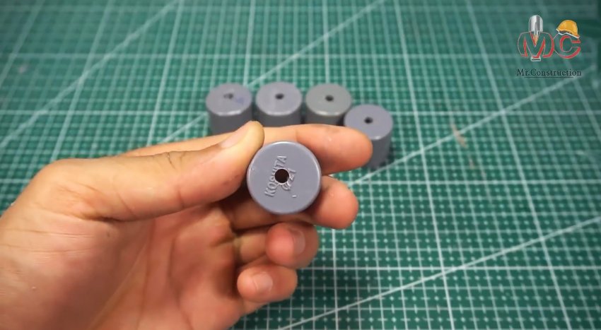 Концы изнутри срезаем заподлицо с внутренней стенкой трубы, а на наружные надеваем пластиковые колпачки, рассверлив в донцах отверстия.