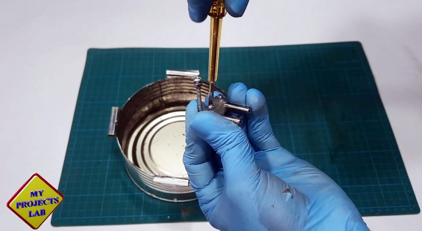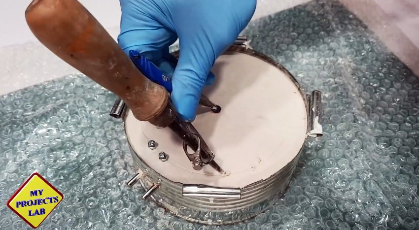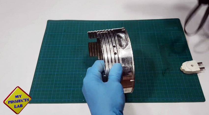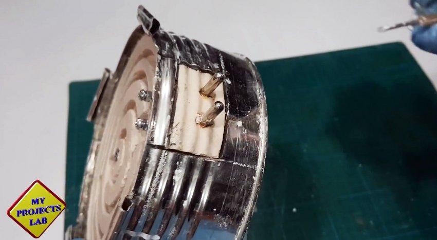 В стенке банки вверху необходимо просверлить 2 отверстия под электрическую вилку.