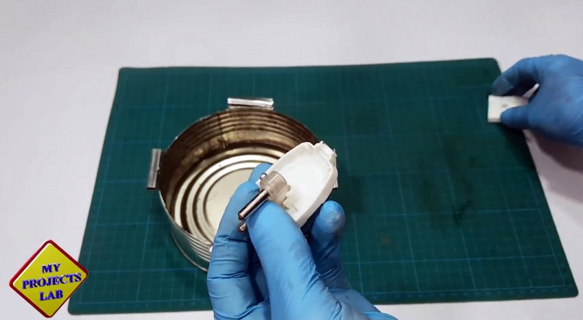В банке вокруг вилки вырезается жесть, чтобы пластиковое гнездо не контактировало с горячим металлом.