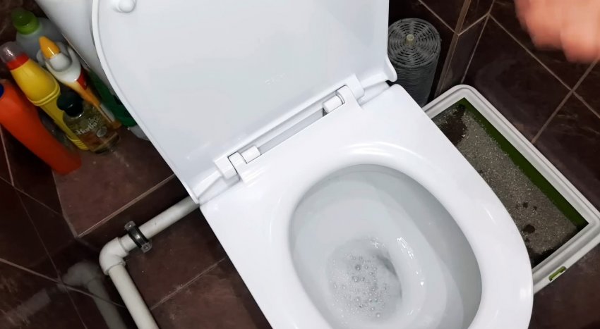 Сливаем водный микст из бачка унитаза, который содержит остатки лимонной кислоты и извести, ржавчину и продукты взаимодействия компонентов.