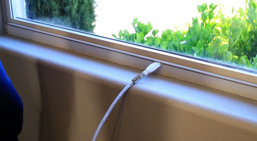 Вот и все. Удивительно простой способ избавит вас от сверления оконной рамы или стены и позволит за считанный минуты проложить кабель от спутниковой или эфирной антенны.