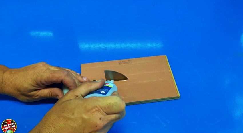 Квадрант одним радиусом вставляем в прорезь основания из ламината снизу и закрепляем с помощью суперклея.