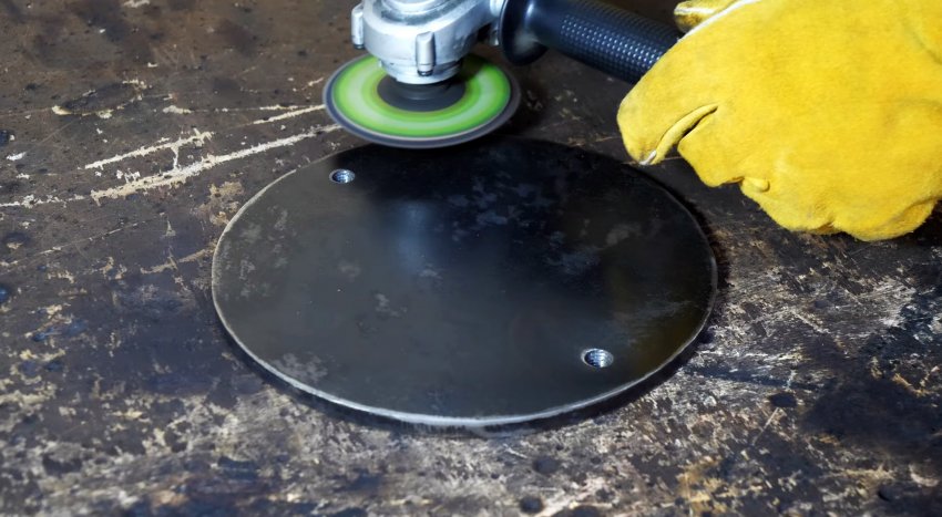 Полоса и диск скручиваются между собой. Затем на диск устанавливаются ножки.