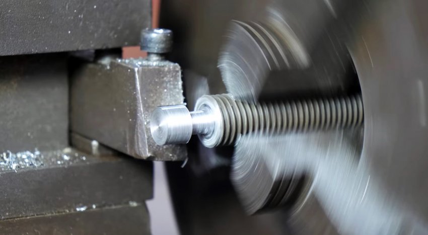 Для изготовления винта потребуется отрезок шпильки. На краю он протачивается под стопор из полосы.