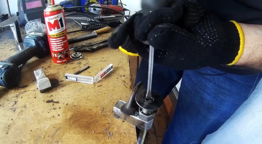 Второй край шпильки нужно просверлить поперек под ручку из прутка 6 мм.