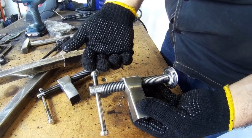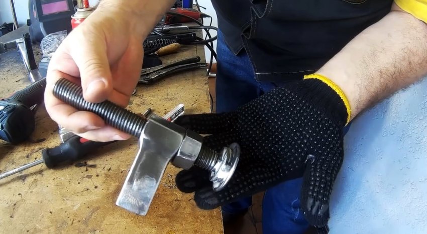 Полученный винт приваривается креплением к скользящей трубке на струбцине строго под прямым углом. Все, инструмент можно красить и использовать по назначению.