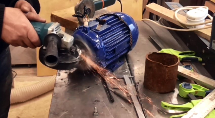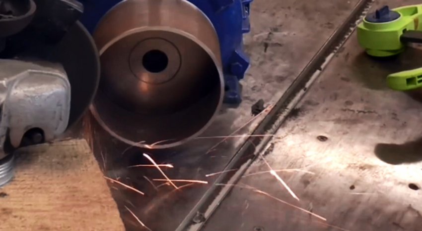 Включаем электродвигатель и болгаркой зачищаем круговой сварочный шов.