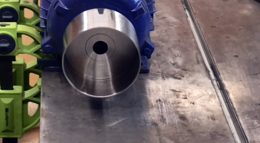 Напрессовываем отрезок трубы на фланец и выставляем его, минимизируя биение.