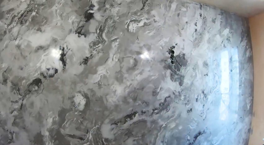 Таким образом, из, казалось бы, хаотичных движений шпателем в итоге получается нереально красивая стена. В любом случае она выглядит куда лучше, чем плитка, так как на ней нет швов. Если у вас все получилось, то штукатурка не уступает по красоте натуральному мрамору.