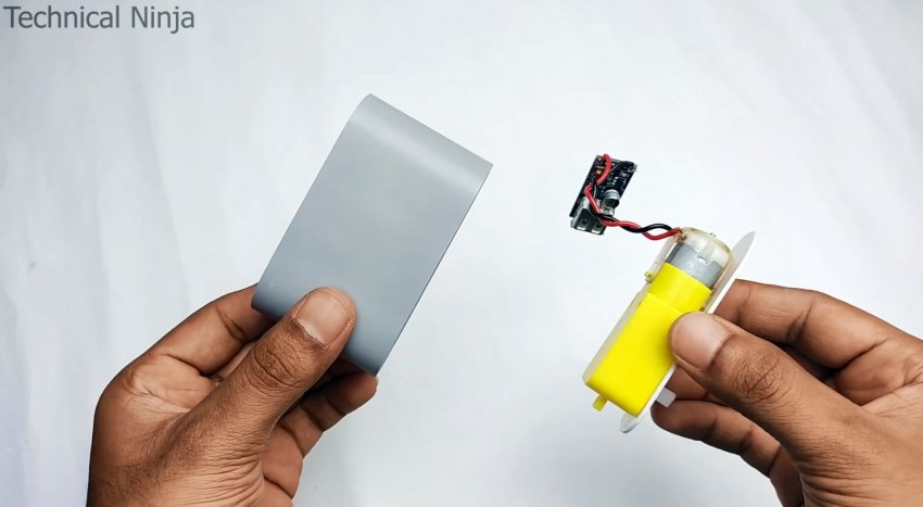 К контактам двигателя припаиваются провода. Их второй край нужно припаять к преобразователю напряжения.