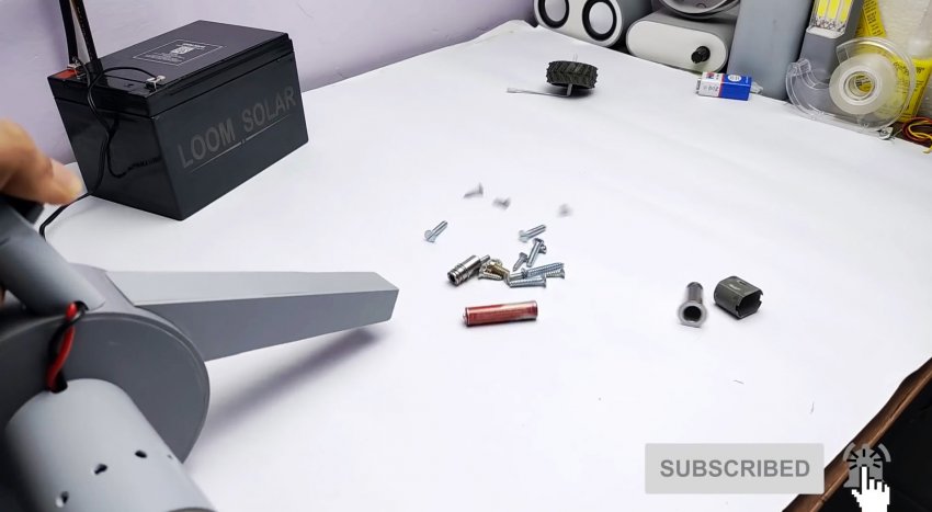 Теперь к воздуходувке можно подключить блок питания или же аккумулятор. В последнем случае используется отрезок провода со штекером. В таком исполнении она сдувает не то что пыль и стружку, но даже мелкие винтики, батарейки и прочие мелочи.