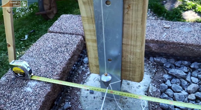 Обратите внимание, что запиливать столб нужно так, чтобы до перемычки скобы оставалось 3-5 см. Он должен как бы висеть на стойках, а не упираться низом. Это предотвратит намокание древесины и ее гниение.