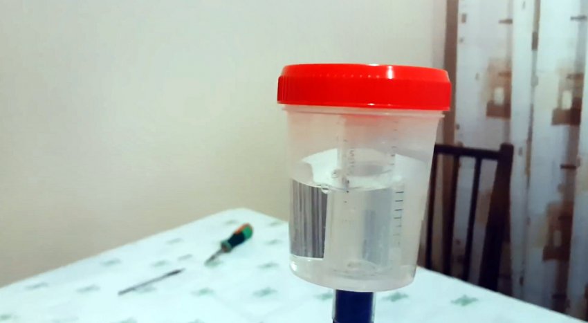 В дне баночки для анализов просверливается отверстие 16 мм.