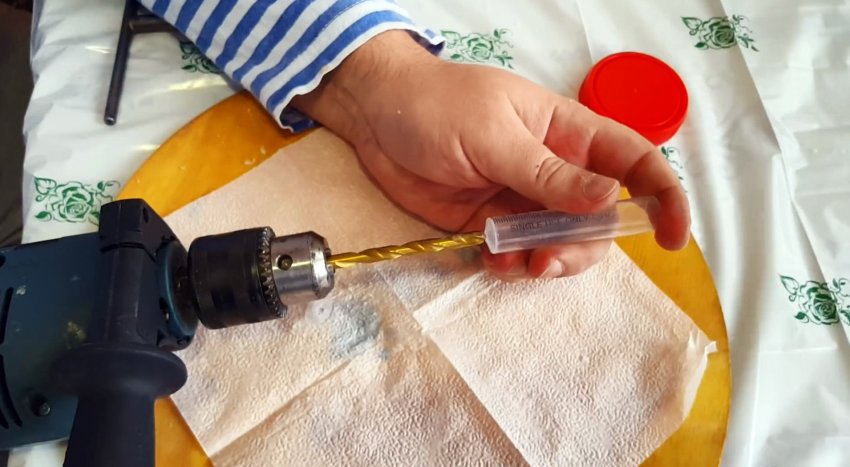 Также нужно рассверлить отверстие от носика шприца 10 куб до 8 мм.