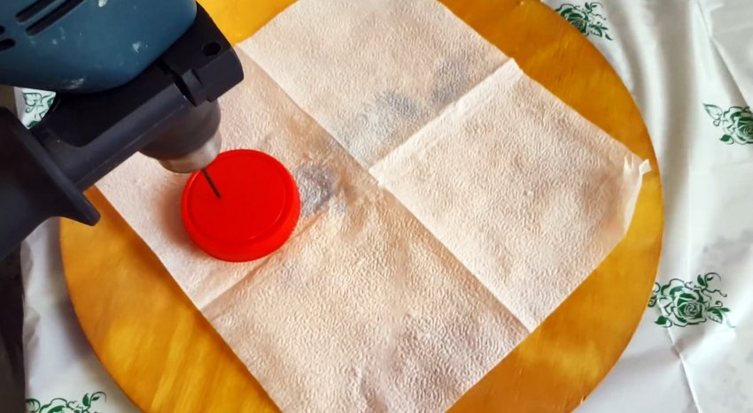 Еще потребуется сделать мелкую перфорацию в крышечке баночки, чтобы с нее выходил газ.