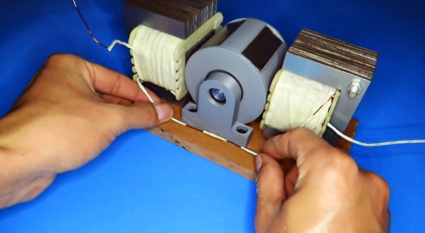 Чтобы воспользоваться генератором, нужно соединить по одному выходу катушек между собой.