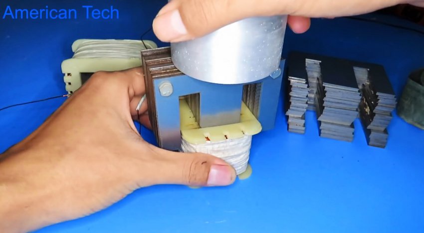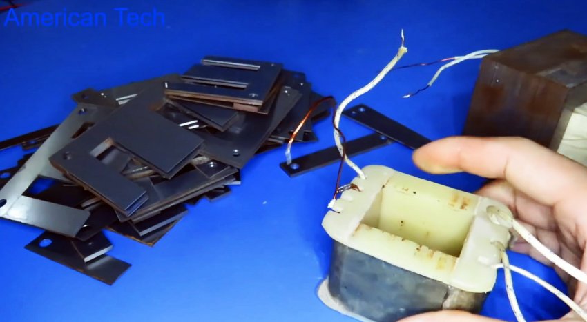 Края обмоток нужно вывести в сторону. После этого требуется заизолировать обмотки. В полученных катушках собираются сердечники из Ш-образных пластин.