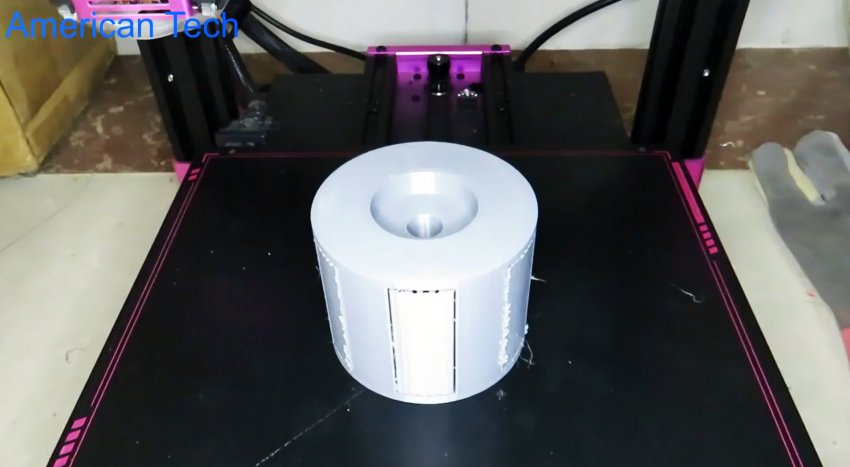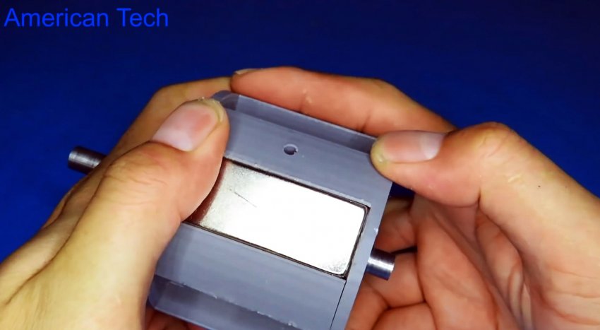 Далее требуется сделать барабан ротора, на котором будут размещаться постоянные магниты. Его можно распечатать на 3D принтере, выточить на токарном станке из пластиковой болванки или другого легкого материала. На заготовке необходимо предусмотреть 6 полостей для вклейки неодимовых магнитов.