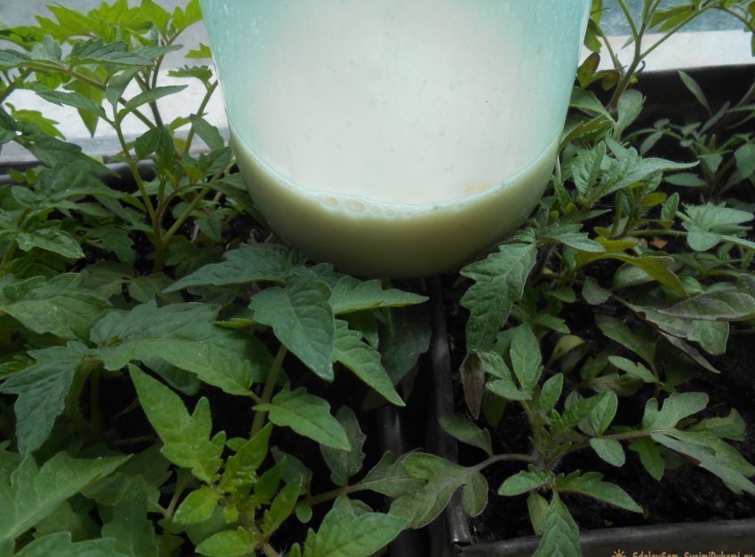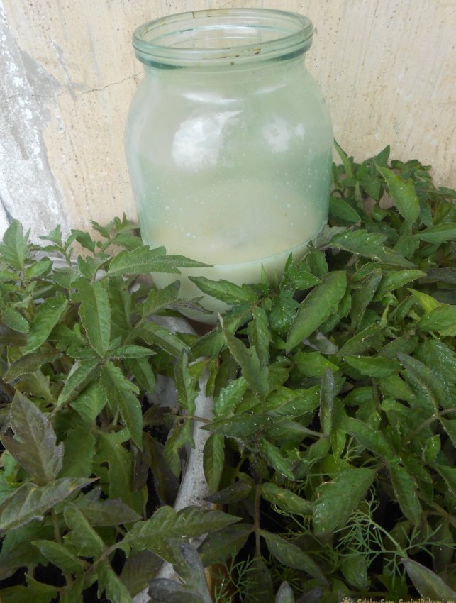 Разведите приготовленный маточный концентрат в соотношении 1:5. Полейте раствором всю томатную рассаду вместо планового полива, лучше утром. Не используйте закваску одновременно с другими удобрениями, как органическими, так и минеральными. Между их внесением должно пройти не менее недели.