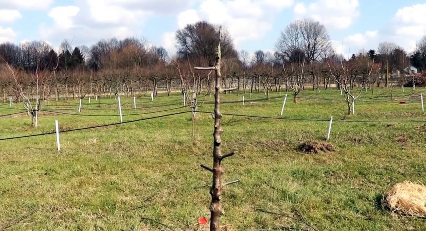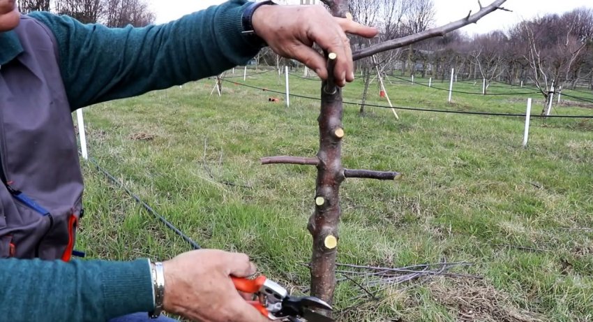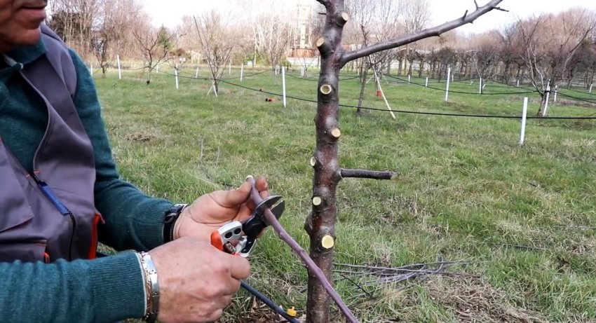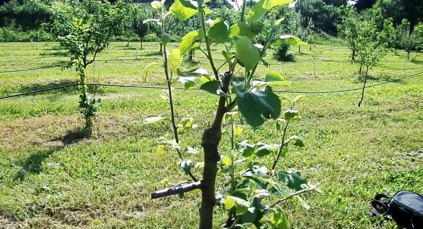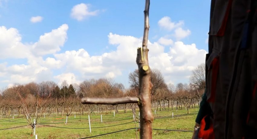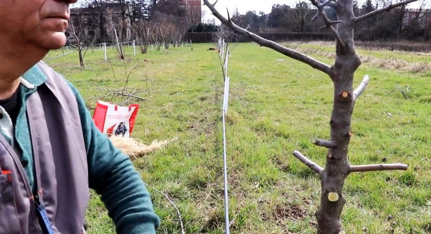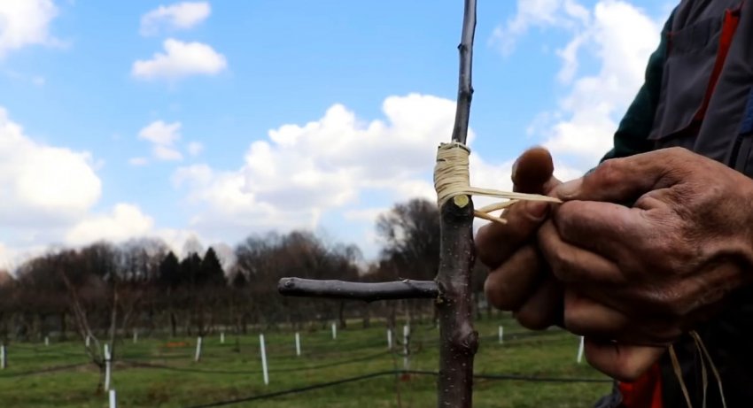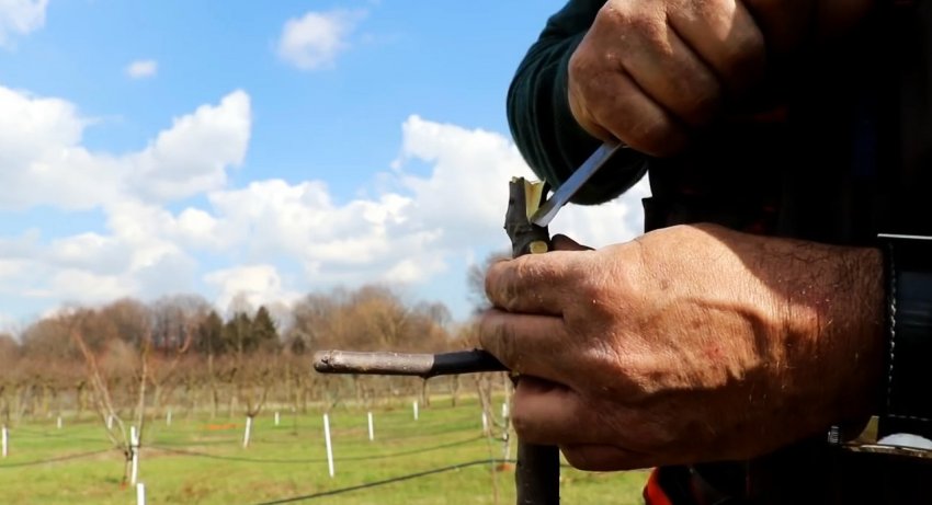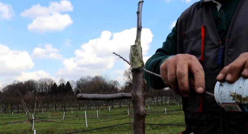 Затем короткий привой с парой почек вбивается в подвой.