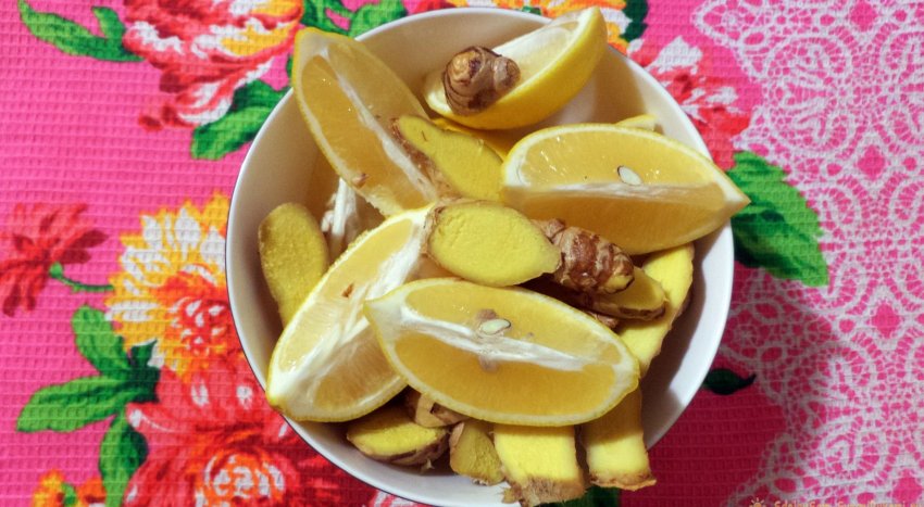 В процессе кипения воды, осторожно ввожу лимонно-имбирную массу и снимаю с огня. На этом этапе нужно дать жидкости остыть до комнатной температуры. Обычно для этого достаточно 3-4 часа в проветриваемом помещении, но при желании процесс можно форсировать, поставив емкости во что-то холодное.