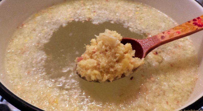 Перетертые в мясорубке ингредиенты отставляю до того пока не закипит вода. На среднем огне вода закипает в течение 40 минут.