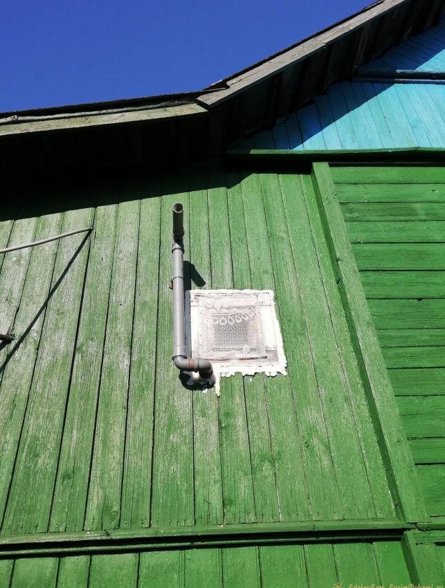 Безусловно, профессионалы могли бы меня хаять за желание отойти от общепринятых правил, однако я поступил следующим образом. Перед стыком двух труб (50 и 110 мм), я поставил тройник на 50. Сверху отвел фановую трубу, довёл её до окна и вывел на улицу под ним. Дело в том, что наш дом – деревянный, насыпной (утеплен опилками), и вывести небольшую трубу прямо под окном было весьма рациональным решением. Именно в этом месте при проделывании отверстия у меня не посыпались бы опилки. Под окном труба прошла горизонтально. Затем я вывел всю эту систему на улицу и зафиксировал трубу, прикрепив её к стене дома. Выводить её выше фронтона пока не стал, т.к. нет возможности туда забраться.