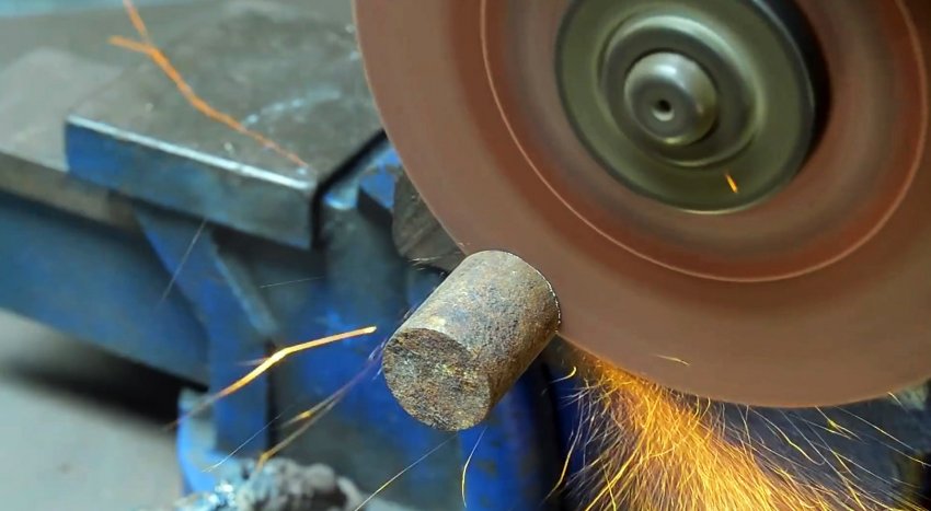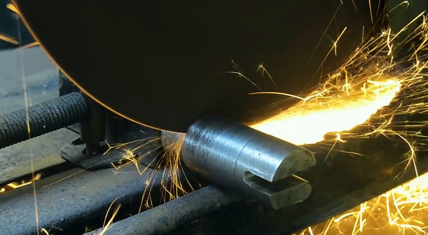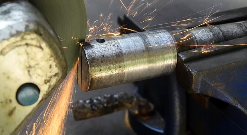 Один из шипов на торце вала требуется скруглить с одной стороны, а также срезать окружность на глубину паза. Именно он будет задавать форму звену цепи. Чем шире и длиннее будет шип, тем крупнее получится звено. После болгарки его следует подравнять напильником.