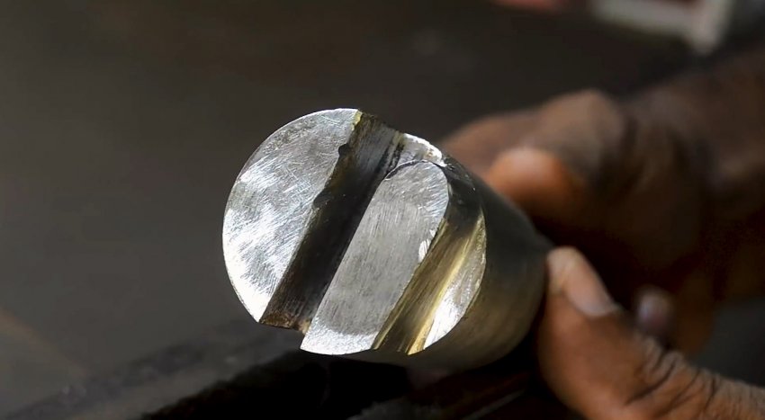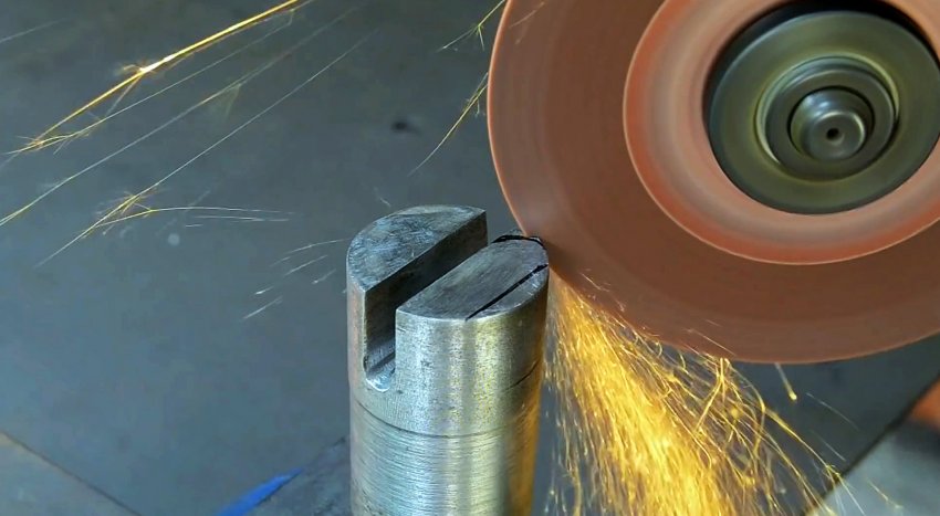 С торца с помощью болгарки нужно вырезать паз до отверстия.