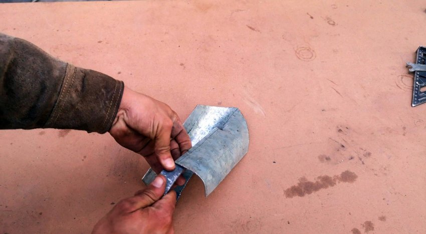 Теперь нужно выгнуть волны вдоль половин заготовки, как у шифера. Причем направление изгиба у них должно быть противоположным друг другу. Все гнется молотком. Далее половины разводятся в стороны, чтобы сформировать клин. Расстояние между волнами будет соответствовать диаметру бурения.