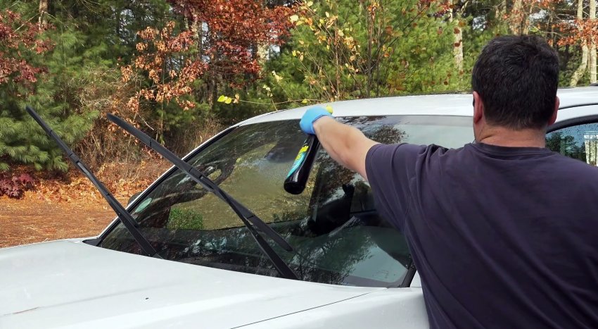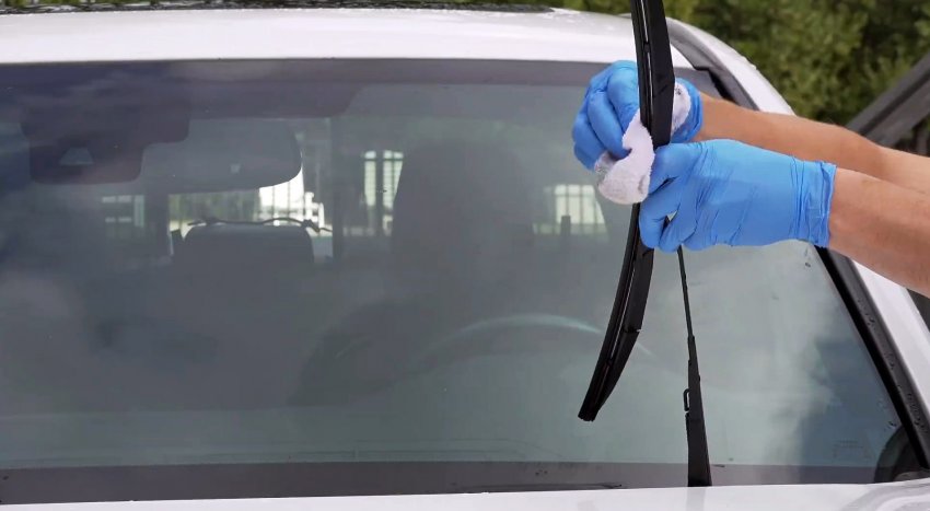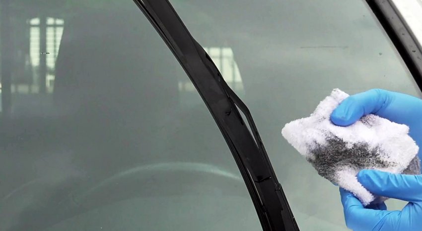 Затем резиновые щетки дворников протираются этим средством без демонтажа.