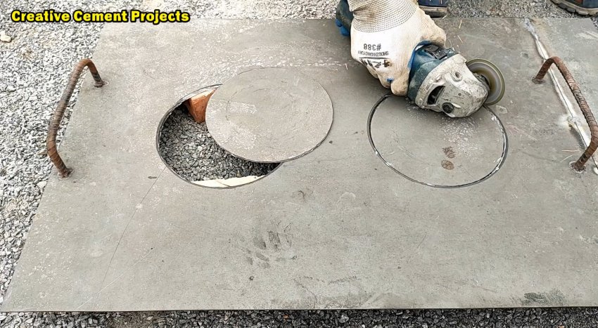 Для печки делается плита с круглыми прорезями конфорками для установки кастрюль. Для удобства снятия к ней привариваются ручки. Она будет ложиться на кирпичи. Такого же размера вырезается решетка.