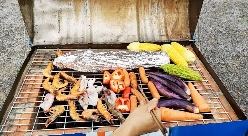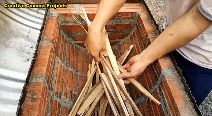 Розжиг печи выполняется как и обычного мангала. После прогорания дров до углей, на кирпич укладывается решетка, и выполняется готовка. Если нужна высокая температура, то можно прикрывать крышку.