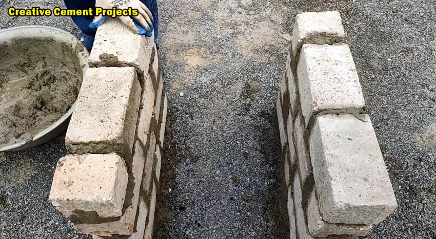 На ровном основании нужно выложить из кирпича 2 ножки для мангала в виде стенок. Их ширина делается на 2,5 кирпича, а высота 4 ряда.