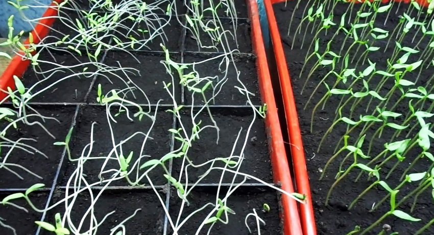 Процесс спасения вытянувшейся рассады