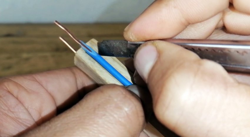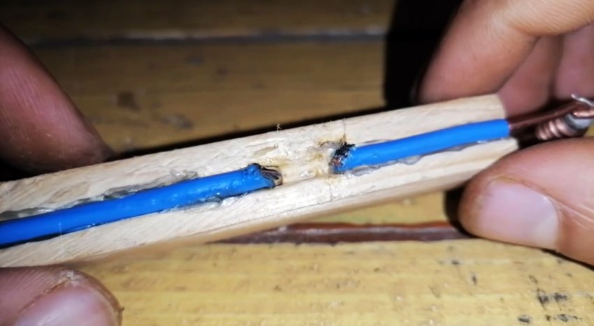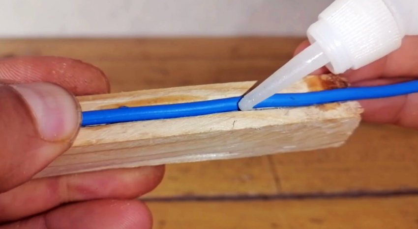 С двух сторон в ней делается паз, в который вклеиваются провода с зачищенными от изоляции краями.