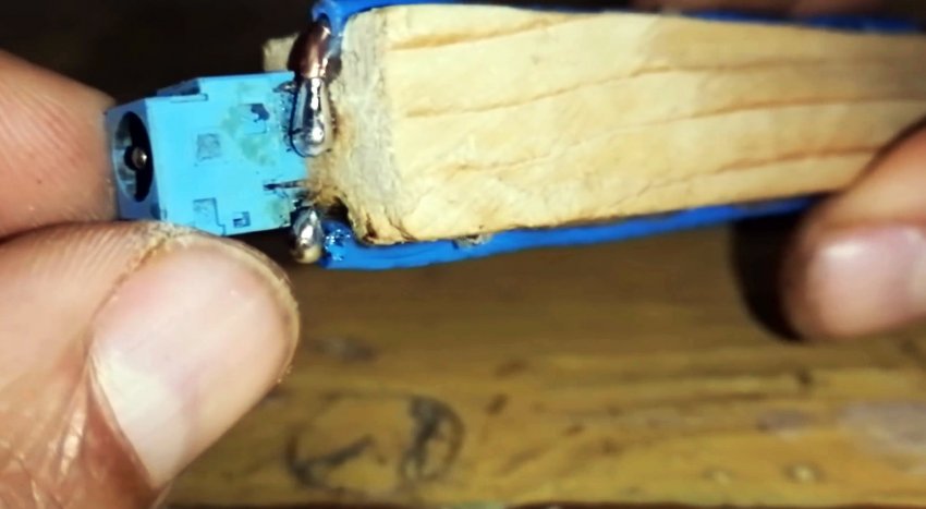 С тыльной стороны ручки, к краям проводов нужно припаять разъем для подключения блока питания.