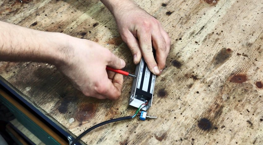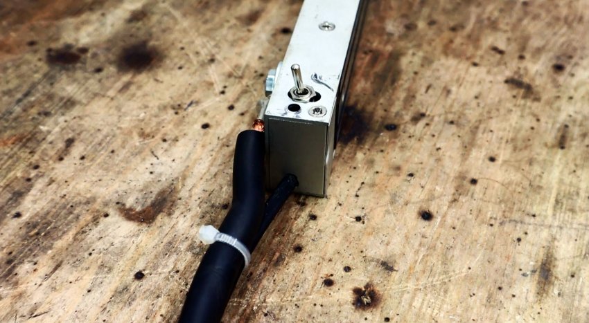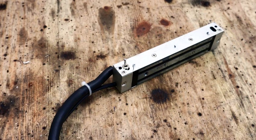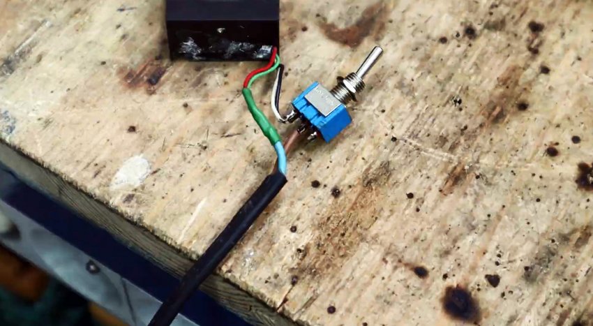 Затем тот припаивается к проводам электромагнита через тумблер. Соединения, которые могут коротнуть, изолируются.