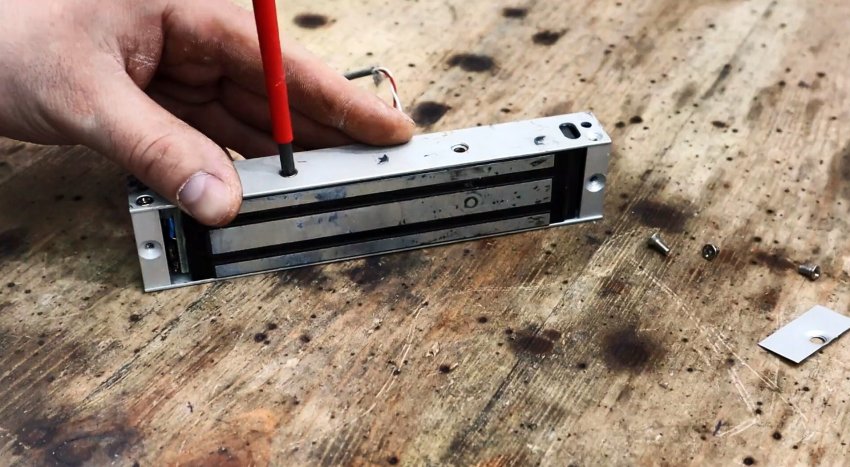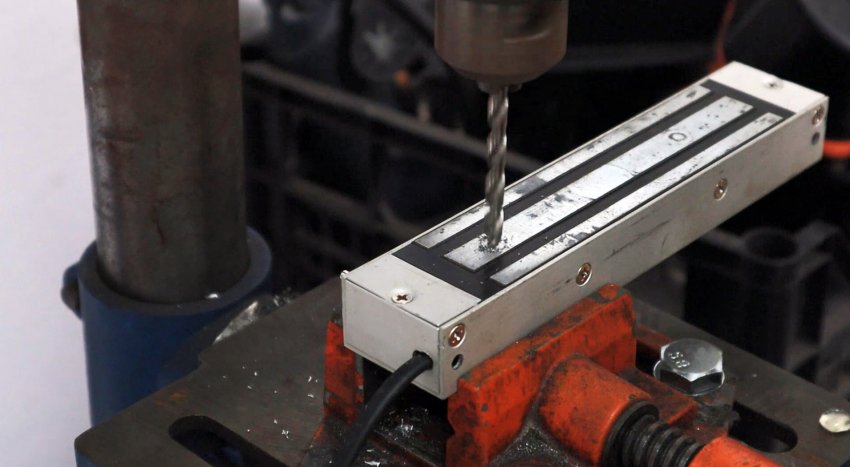 В центре электромагнита на тыльной стороне просверливается отверстие, и в нем нарезается резьба. Затем к нему прикручивается кабель массы от сварки.