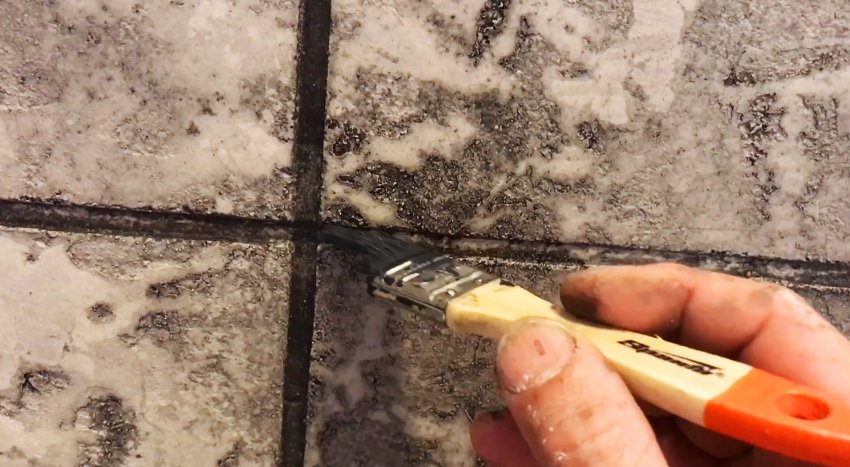 Швы нужно закрасить маленькой кисточкой грунтом, заколерованным в более темный цвет. Так плитки будут выделяться лучше.