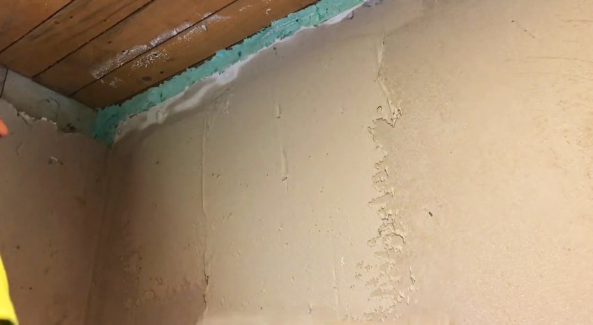 Она наносится широким шпателем на одну стену сверху вниз слоем 3-5 мм. За один раз штукатурится примерно 1-2 м стены.