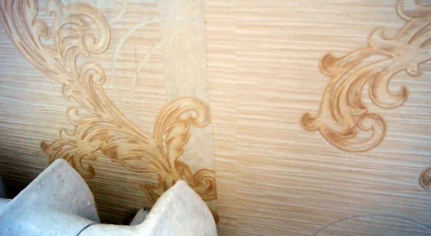 Лишняя высота полосы срезается ножом. Дальше нужно смазать обои в месте перехлеста и пригладить сверху второй слой. После этого делается подрезка на кронштейнах.