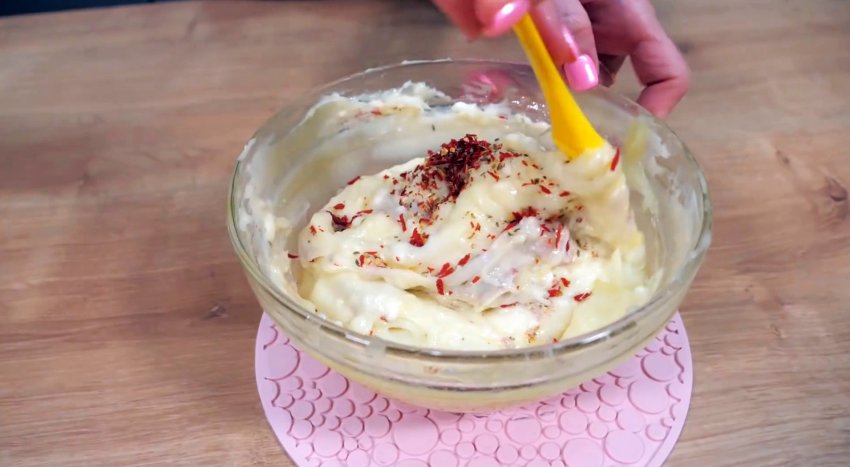 В третью порцию можно добавить сушеные томаты с чесноком и базиликом. Чем больше томатов, тем насыщенней получится цвет. Главное не перестараться с сухим чесноком.