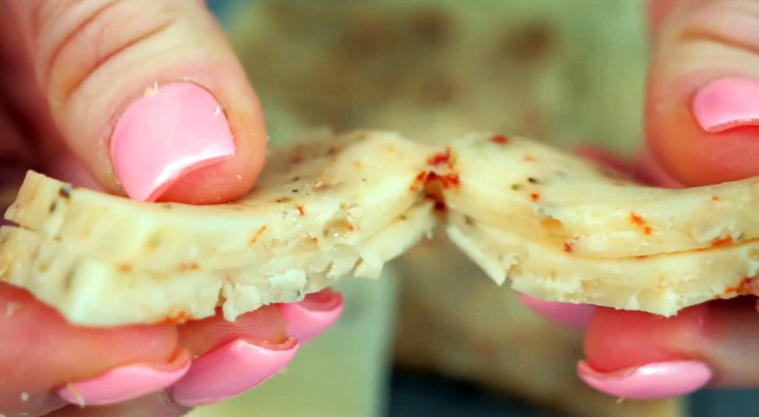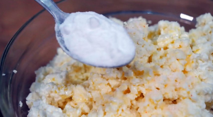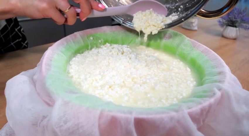 Творожную массу можно разделить на 3 части, чтобы приготовить 3 разные вида сыра. В каждую их них добавляется 1/3 ч.л. соли, 30 гр. растопленного сливочного масла и 1 ч.л. соды.